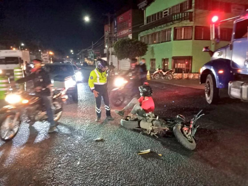 Una fuerte colisión se registró esta mañana en la calle Corona, zona 12 de Villa Nueva, en la que se vio involucrado un motorista.