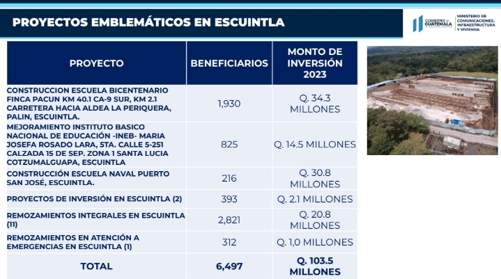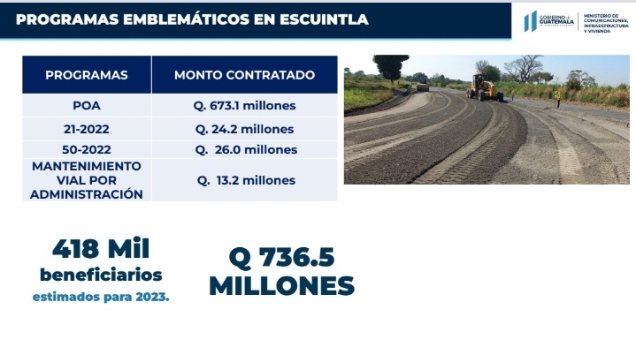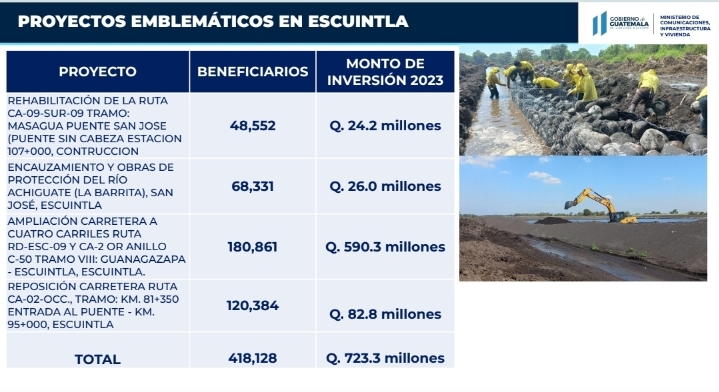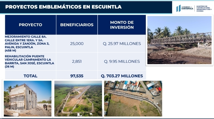 Inversión para Escuintla asciende a 3 mil 568 millones de quetzales