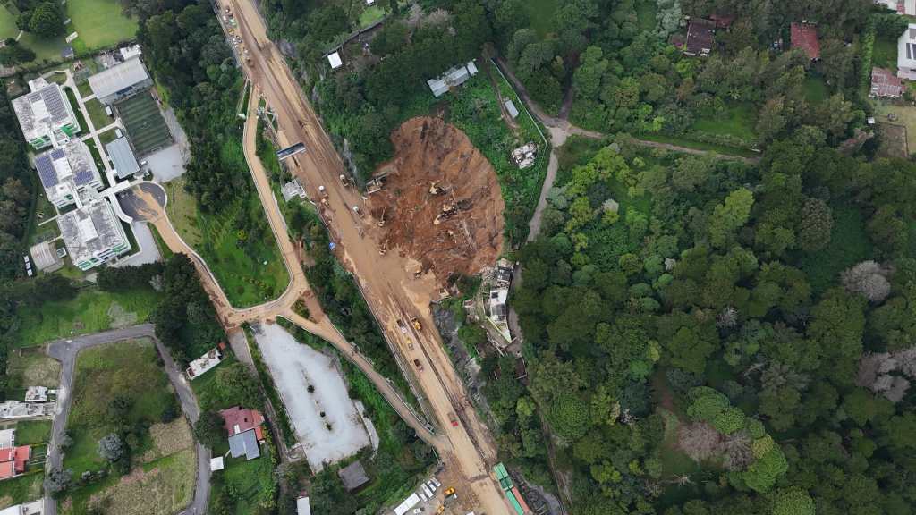 El pasado 6 de octubre, un talud se desmoronó y una gran cantidad de tierra y lodo cayó sobre una obra en construcción. La magnitud fue tal que cubrió los cuatro carriles de la carretera Centroamericana en ese punto. Para liberar el paso, se requirió maquinaria pesada y la intervención del personal de la comuna, de la Coordinadora Nacional para la Reducción de Desastres (Conred) y del Ejército.