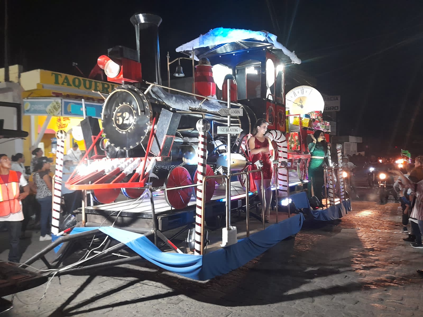 Zacapa, 13 dic (AGN).- Carrozas y representaciones artísticas populares con diseños navideños fueron aplaudidas por cientos de vecinos que se aglomeraron para disfrutar del desfile navideño que recorrió Teculután.