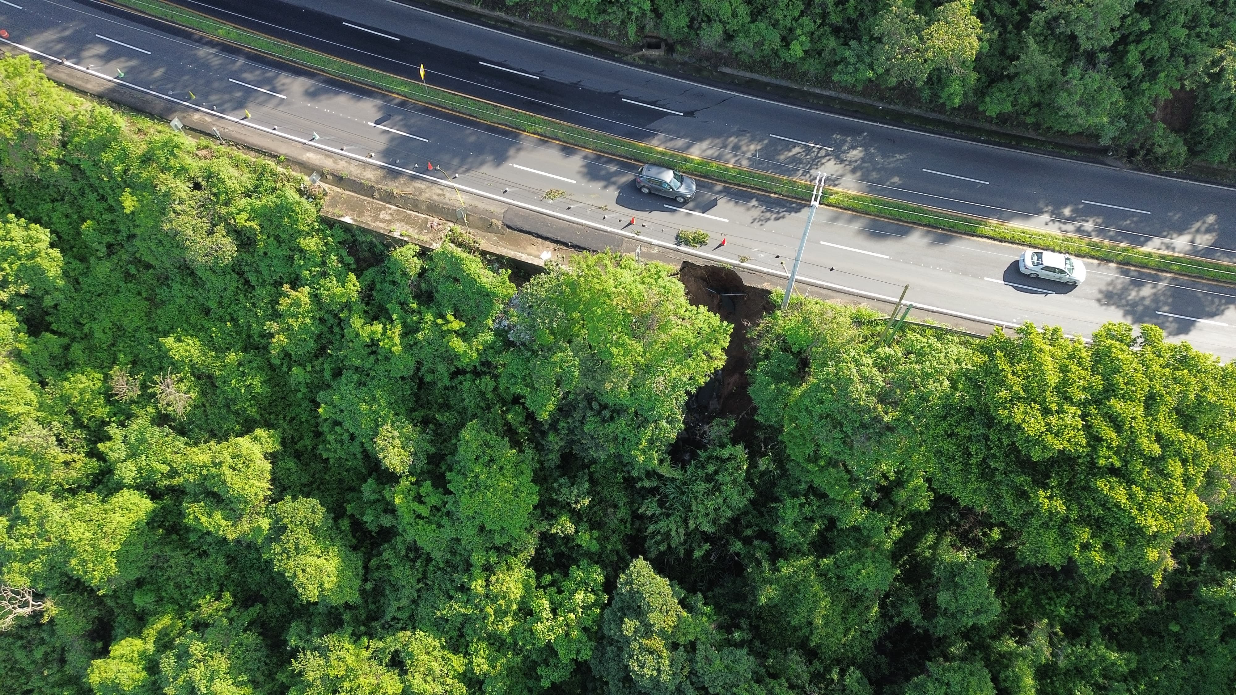 Vista panorámica del nuevo socavón en carretera a El Salvador. (Foto Prensa Libre: Oscar Vásquez)