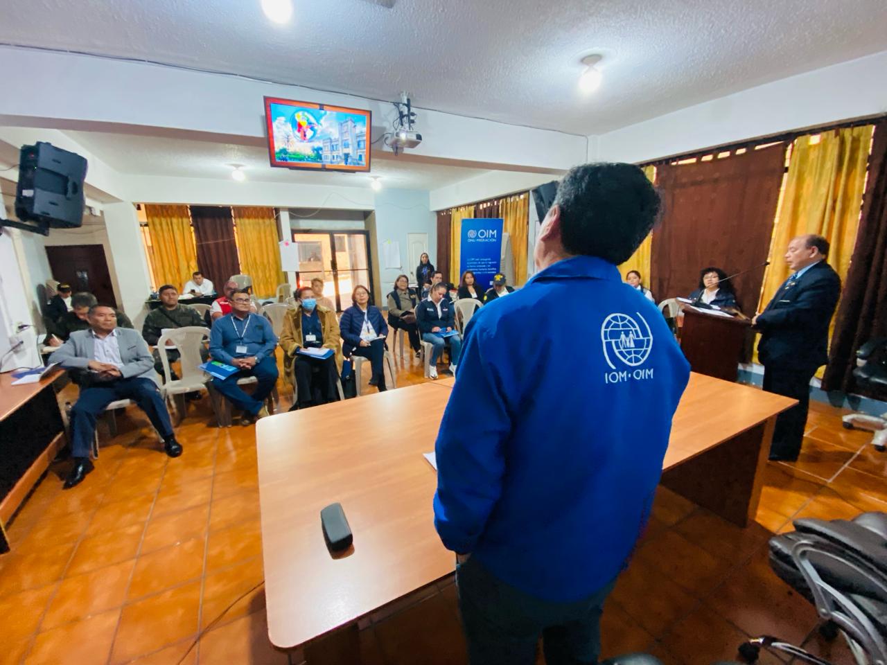 Seguidamente, Walter Arreaga delegado local de la Organización Internacional para las Migraciones (OIM) en su intervención destacó la importancia de la Gobernanza de la Migración a nivel departamental y local.