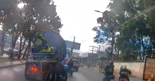 Otra grabación fue en medio del tránsito y se ve cuando varios motoristas se desplazaban cerca del camión cisterna.