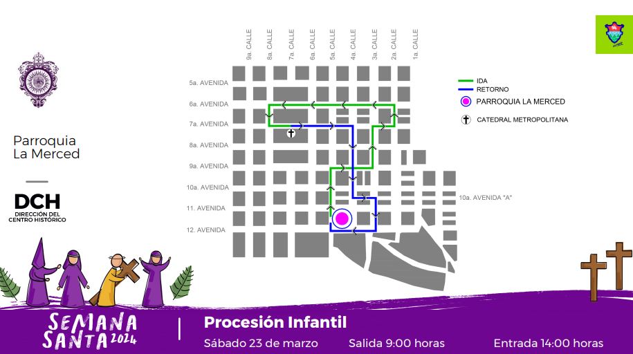 Los cortejos procesionales son parte fundamental de la Cuaresma guatemalteca. De esa cuenta, la Dirección del Centro Histórico, en coordinación con los distintos templos y Hermandades, diseñó una Guía de recorridos procesionales 2024, la cual reúne las 59 procesiones que este año recorrerán el Centro Histórico.