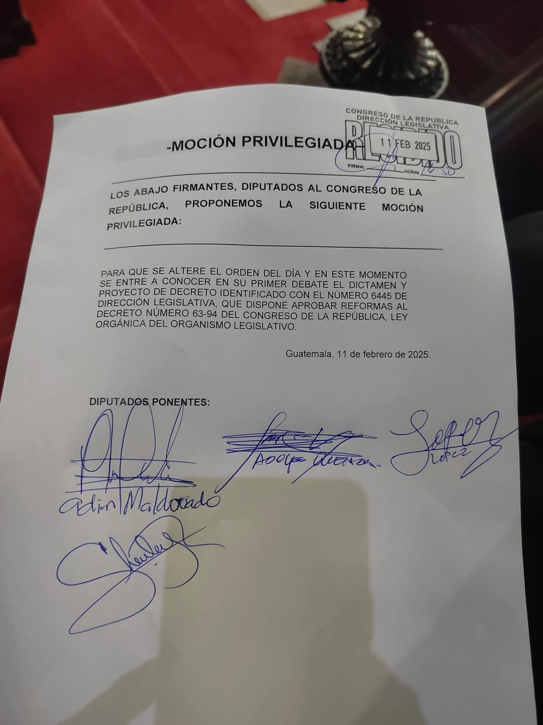 A lo que se sumaron los diputados de Todos, Byron Rodríguez; de la UNE, José Inés Castillo; Bienestar Nacional (Bien), Fidel Reyes Lee, de Valor, Elmer Palencia, de Elefante, Rodrigo Pellecer, y de Vamos, Allan Rodríguez, de estar en contra de dicha reforma, porque requiere de mayor análisis y varios indicaron que si se modifica dicha normativa no es de carácter retroactivo, pero para algunos es la legislación de un organismo.