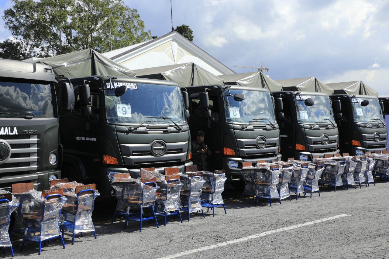 En la Fuerza Aérea Guatemalteca se desarrolló un acto protocolario en el cual se inició con la entrega del mobiliario que se distribuirá en las 25 direcciones departamentales de Educación.