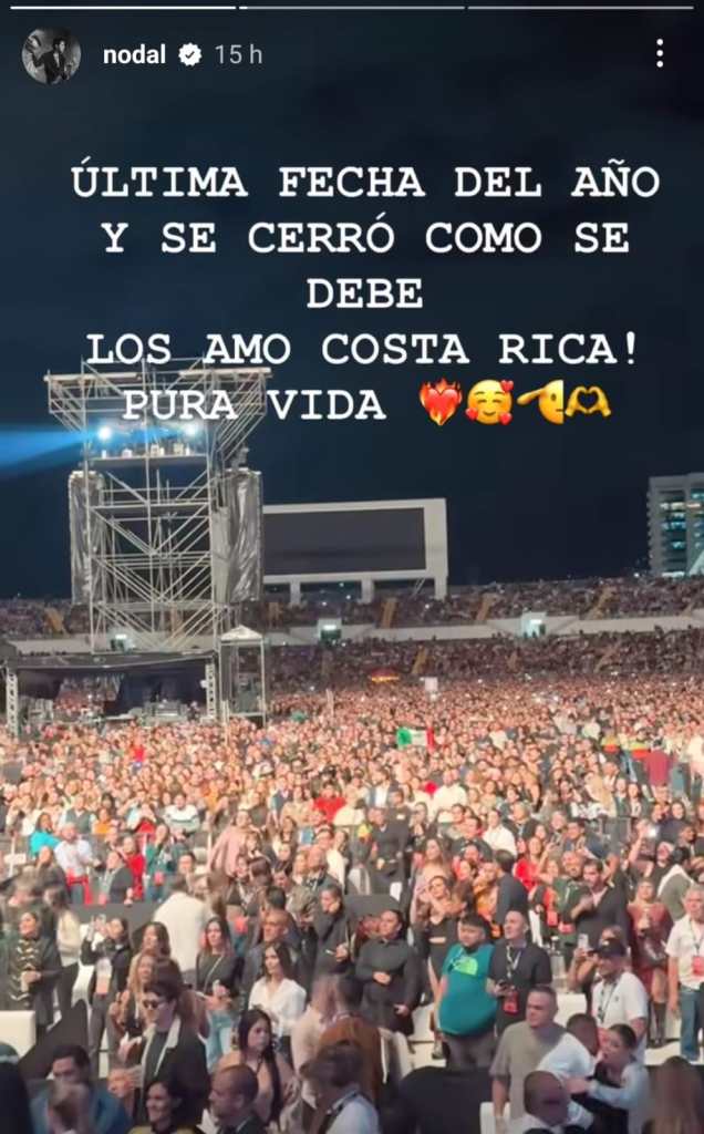 Al final del concierto, Nodal y su esposa se subieron a un avión privado para seguir con sus planes personales, desde donde Ángela compartió un video en su cuenta de Instagram donde se podía ver al cantante muy satisfecho por el cariño que había recibido por el público costarricense en el Estadio Nacional del país centroamericano.
