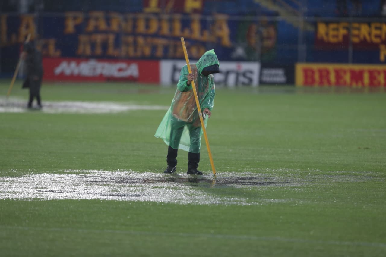 Las imágenes del estadio mostraban charcos en distintas áreas de la cancha y el balón prácticamente detenido al intentar rodarlo. El personal del club realizó trabajos de limpieza y drenaje, pero la magnitud de la tormenta hacía imposible que el campo quedara en condiciones de juego en el corto plazo.