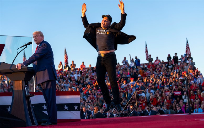 El 5 de octubre, apareció por primera vez con Trump en un mitin, dando saltos alrededor del candidato. Esa noche, Musk compartió su entusiasmo con una persona cercana. “Me siento más optimista después de esta noche”, escribió en un mensaje de texto. “Mañana desencadenaremos la anomalía en la matrix”.