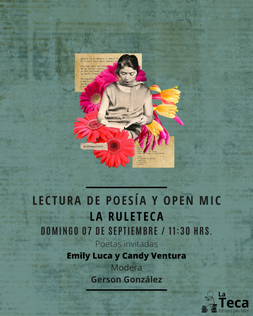 Además de deleitarse con los versos de las autoras invitadas, los asistentes podrán participar en dos dinámicas posteriores a la lectura de poesía. La primera consiste en leer un texto al azar de los libros de La Teca, proporcionado por los organizadores.