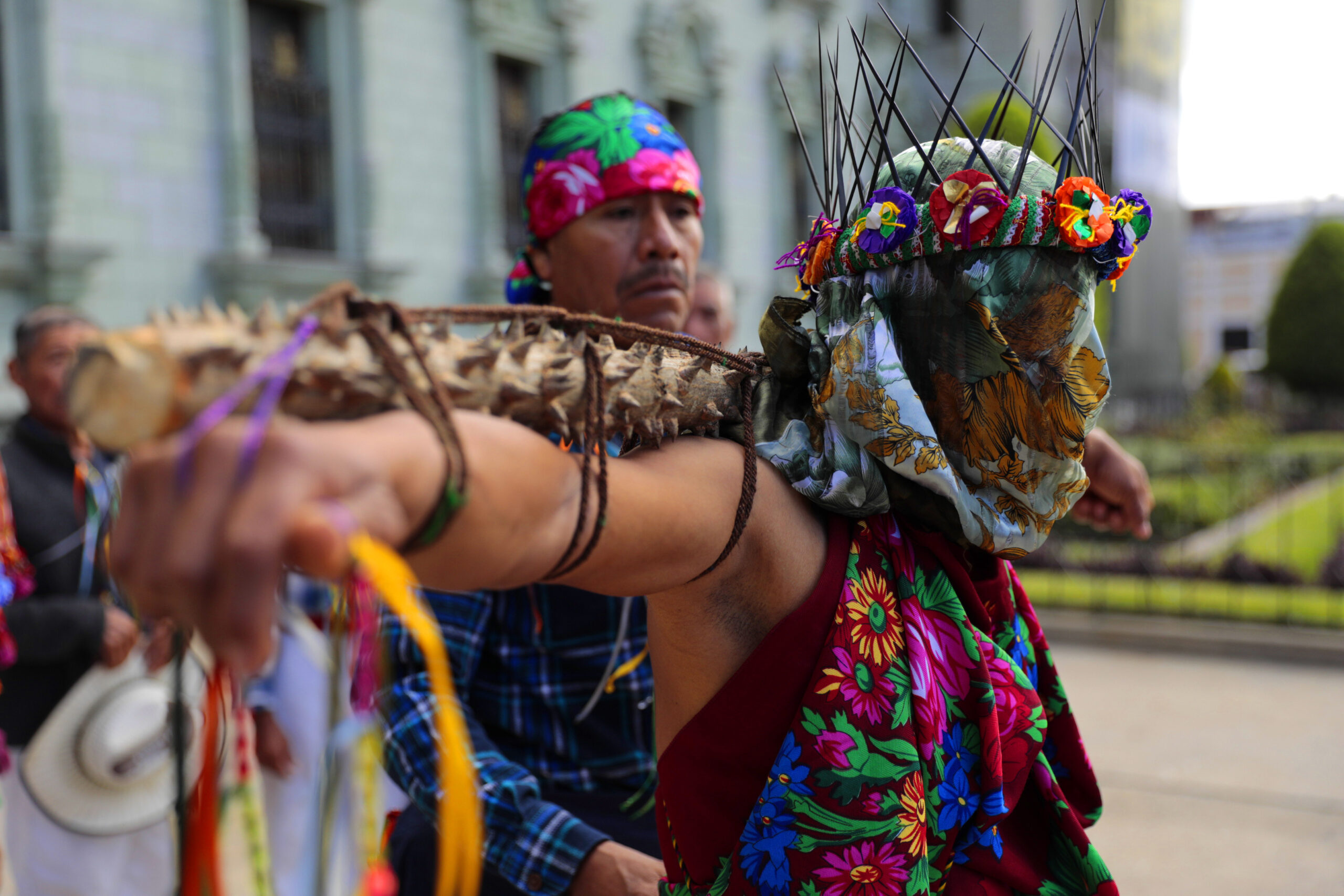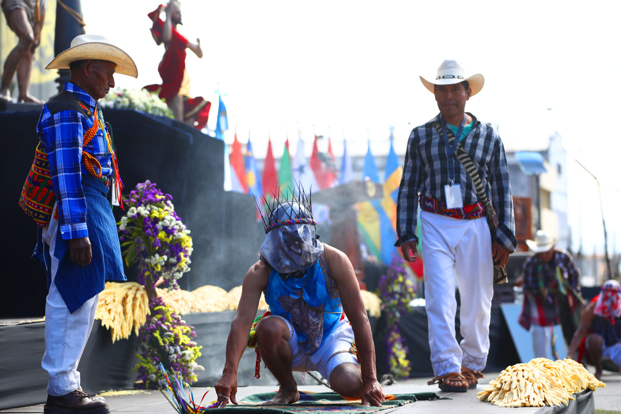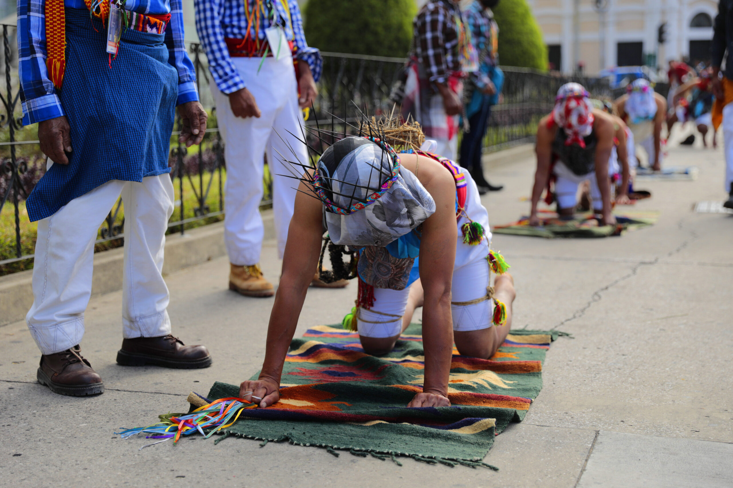 En este acto participaron Los Gateadores de San Andrés Sajcabajá, Quiché, quienes se caracterizan por su forma de representar la penitencia, la gracia y el perdón. Visten trajes especiales y llevan el rostro cubierto. Además, portan coronas de espinas en señal de expiación de sus pecados.