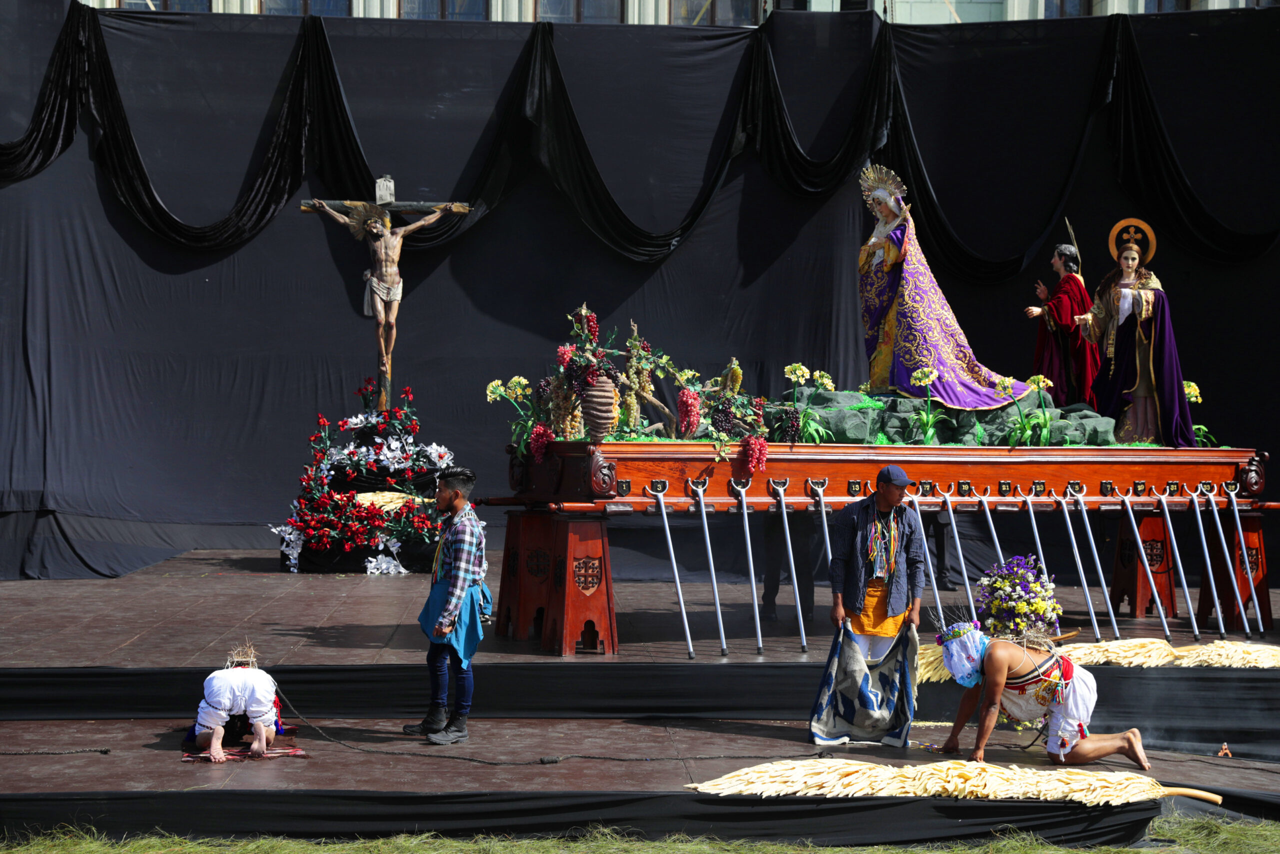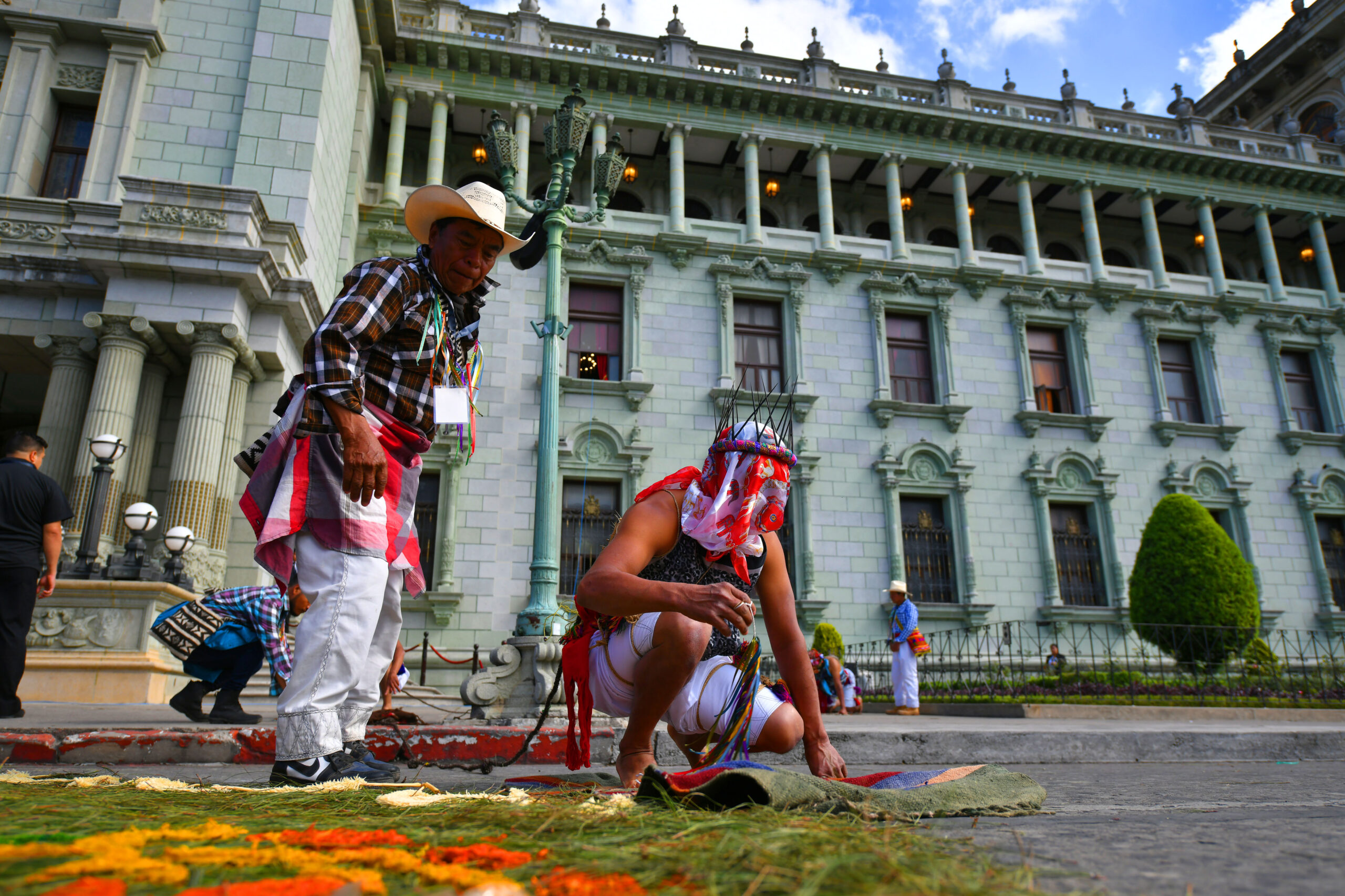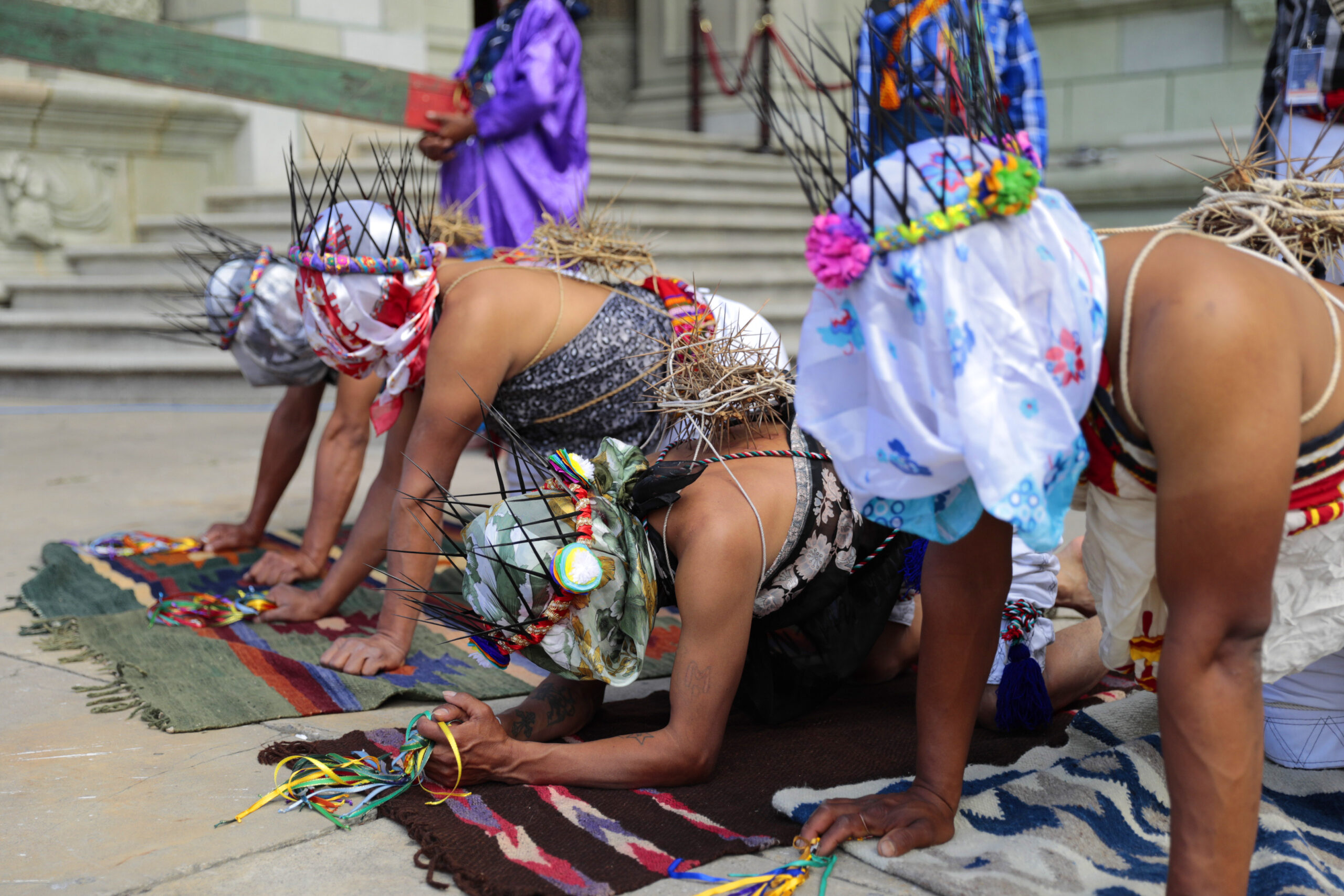 En este acto participaron Los Gateadores de San Andrés Sajcabajá, Quiché, quienes se caracterizan por su forma de representar la penitencia, la gracia y el perdón. Visten trajes especiales y llevan el rostro cubierto. Además, portan coronas de espinas en señal de expiación de sus pecados.