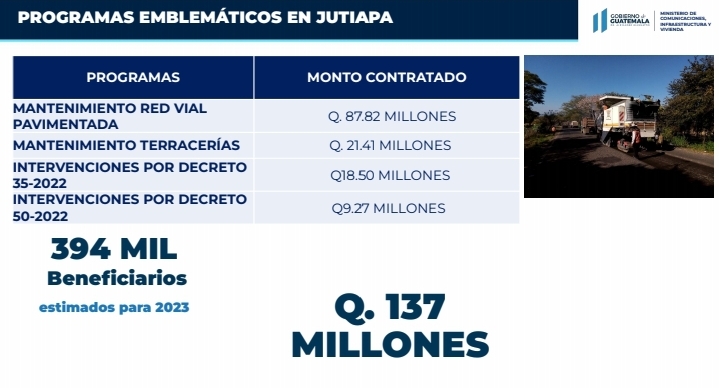Las autoridades del Ministerio de Educación explicaron que la cartera destinó a Jutiapa 746.94 millones de quetzales para 2023. Parte de esta cifra se utilizará en los siguientes programas: