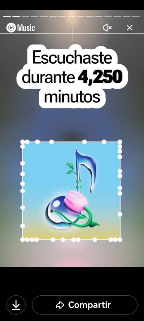 Para compartirlas, toque el ícono correspondiente en la página del Recap. Puede descargar y compartirlas en otras apps sociales.