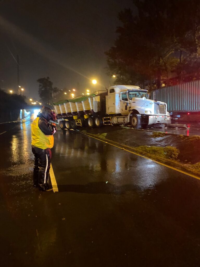 Esta mañana un vehículo de transporte pesado perdió el control y se empotró en el arriate central del Anillo Periférico, zona 7.