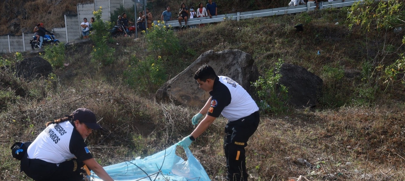 A eso de las 14.57 horas del domingo 5 de enero los Bomberos Voluntarios reportaron el hallazgo del cadáver de una mujer en los matorrales de la playa pública, Planta Laguna, Amatitlán.