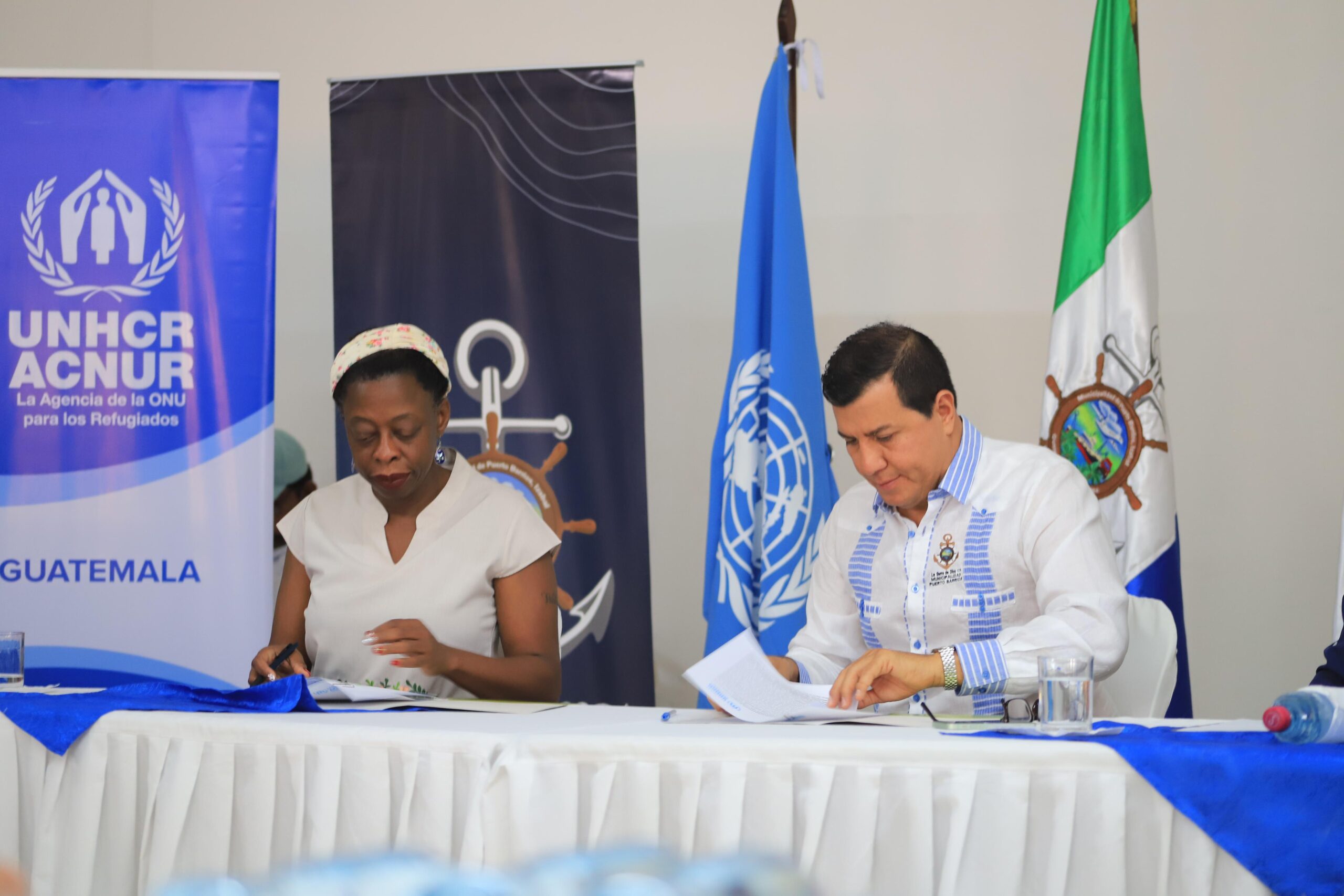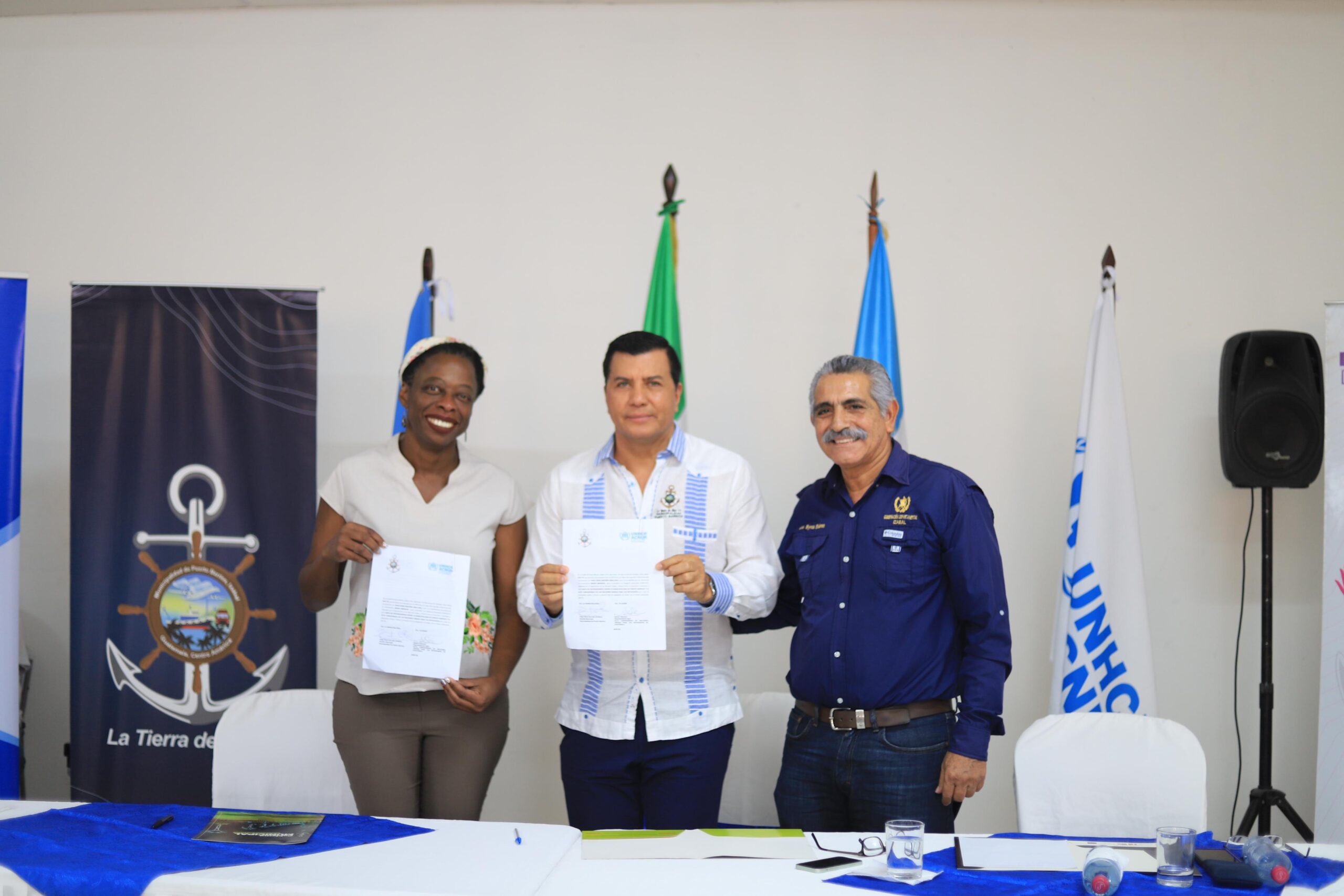 En la firma del convenio se contó con la participación de Byron Solares, gobernador departamental; Hugo René Sarceño, alcalde de Puerto Barrios, y representantes del alto comisionado de las Naciones Unidas para los Refugiados (ACNUR).
