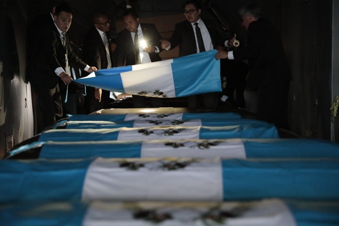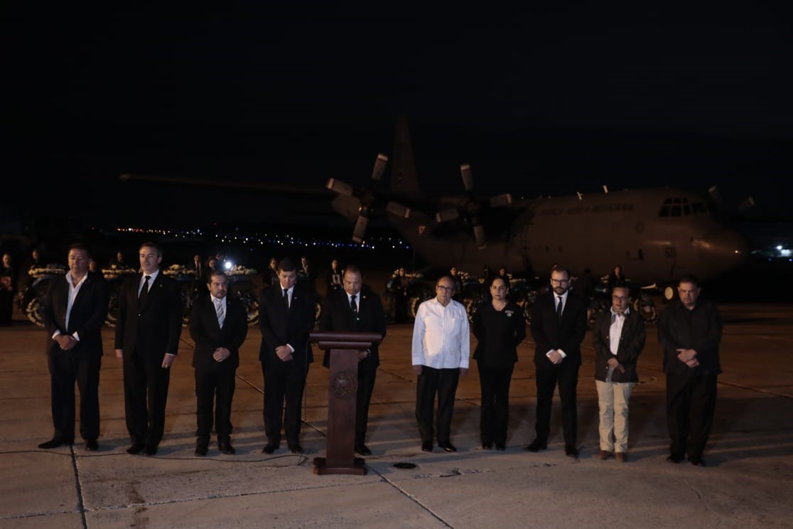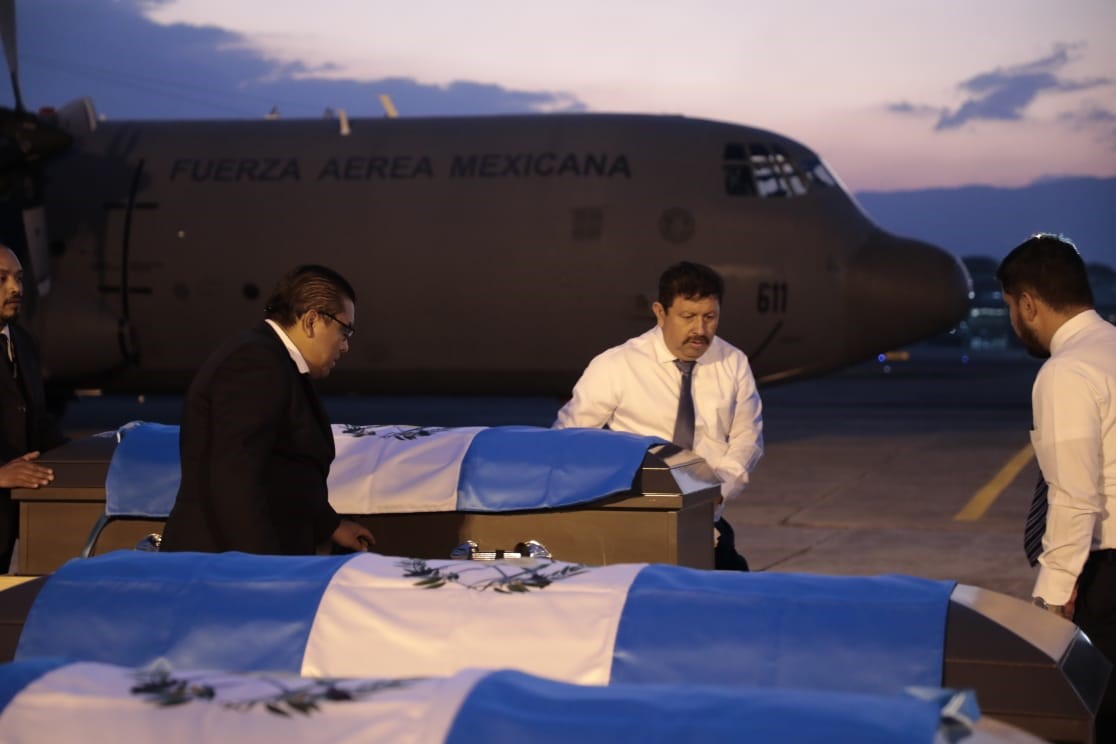 Por medio de una coordinación con autoridades mexicanas, los cuerpos arribaron en un vuelo de la Fuerza Aérea Mexicana alrededor de las 18:00 horas de este martes, en la zona 13 de la capital.