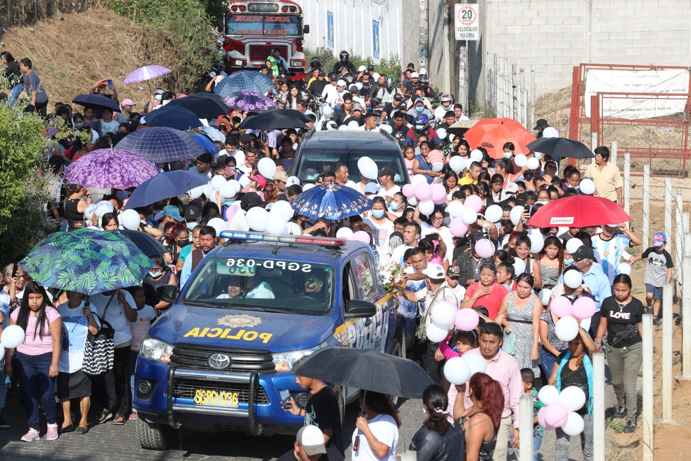 Mediante una patrulla de la Policía Nacional Civil (PNC) y con la sirena encendida, fue llevado el ataúd de Génesis, mientras que cientos de personas acompañaron el vehículo con dirección hacia el cementerio.