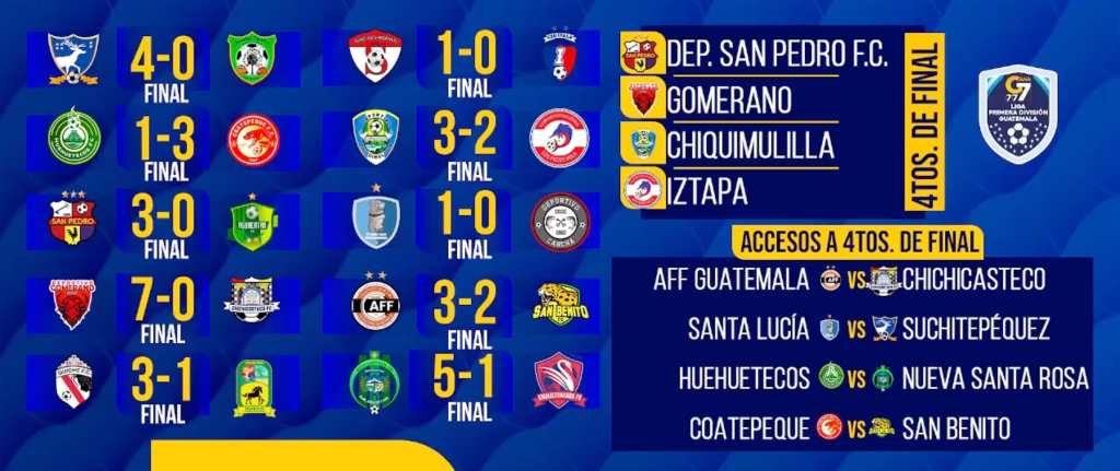 El Grupo B también dejó resultados definitorios. Nueva Santa Rosa goleó 5-1 a los Cisnes Blancos de Chimaltenango FC, sellando el descenso de los chimaltecos de forma contundente. Iztapa venció 3-2 en un partidazo para asegurar su clasificación directa a cuartos, mientras que AFF Guatemala sorprendió 3-2 a San Benito en el Estadio Julio A. Cobar.