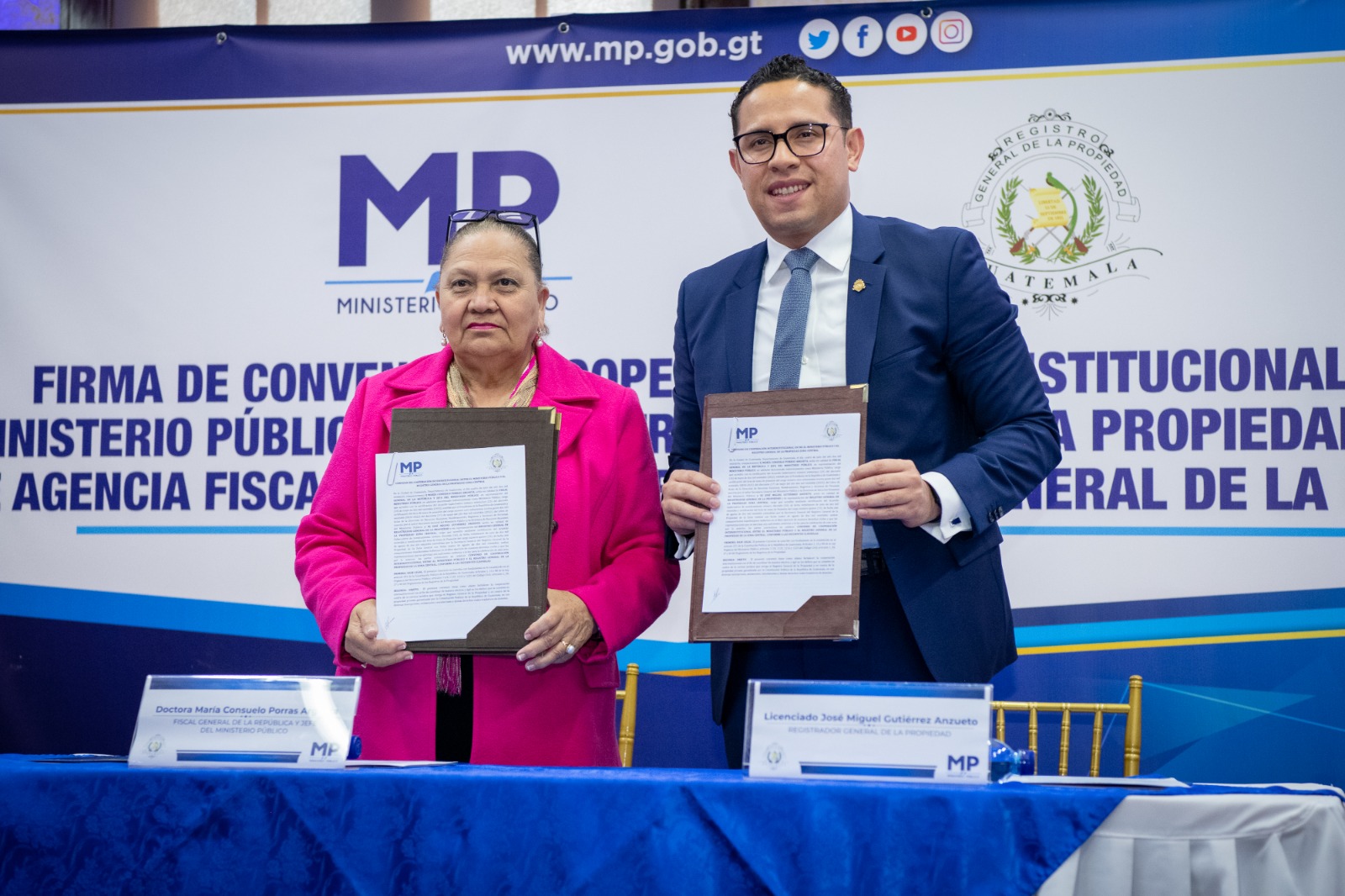 Ciudad de Guatemala, 4 jul (AGN).- Con el fin de brindar un mejor servicio a la población guatemalteca, el Ministerio Público (MP) firmó un convenio de cooperación interinstitucional con el Registro General de la Propiedad.