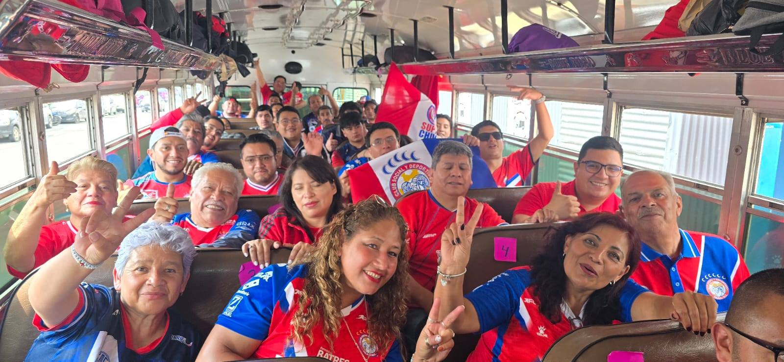 Aficionados altenses abordando el autobús antes de emprender su viaje hacia la ciudad capital, donde Xelajú MC enfrentará a Real España en las semifinales de la Copa Centroamericana.