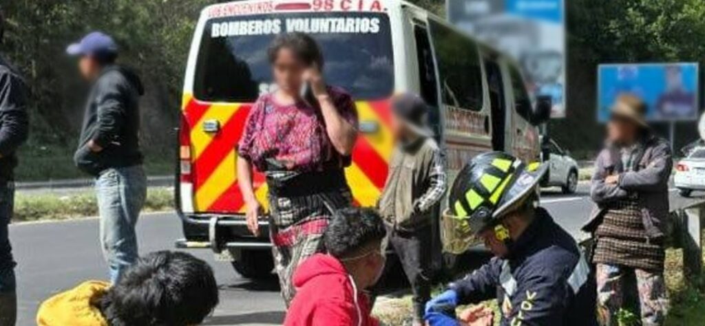 Dos motoristas resultaron heridos tras ser atropellados por un microbús en el kilómetro 124.5 de la ruta Interamericana, en el sector de Sacbochol, Sololá.