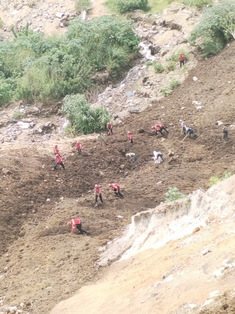 Rastrean el cuerpo de una persona, atrapada por un alud de tierra.