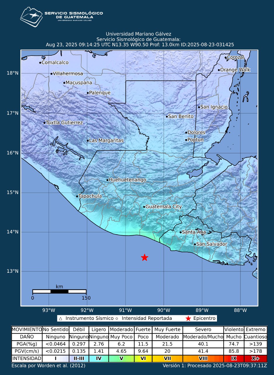 Nuevamente, la actividad sísmica en el país alarmó a los guatemaltecos durante este sábado 23 de agosto, cuando en horas de la madrugada se registraron dos sismos.