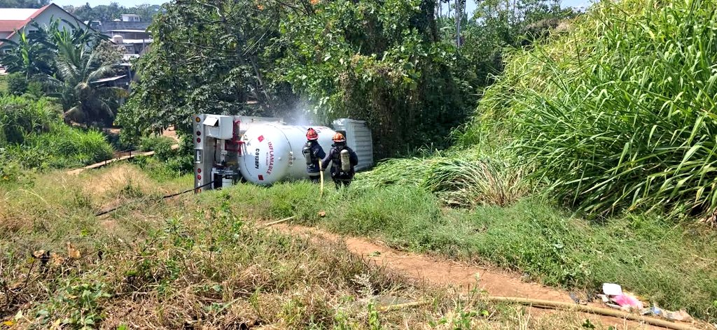 Un incidente ocurrió en el departamento de Quetzaltenango, donde una cisterna que transportaba gas propano volcó al caer a una hondonada.