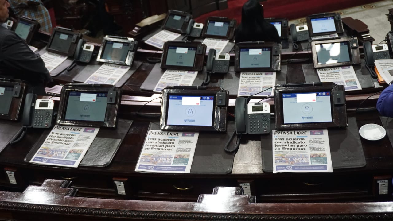 En señal de autocrítica, el diputado Cristian Álvarez, del bloque Compromiso, Renovación y Orden (Creo), llevó una edición impresa de Prensa Libre a cada una de las 160 curules, para cuestionar el sentido de las interpelaciones.