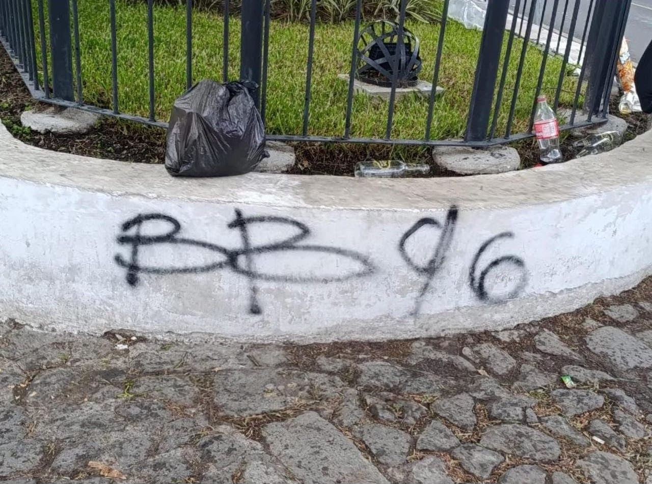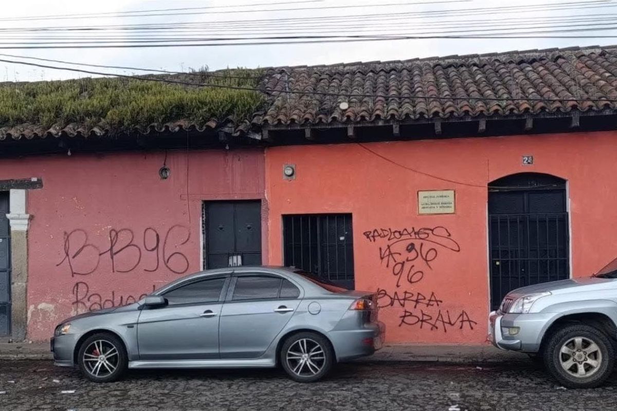 Algunas paredes de la Antigua Guatemala fueron manchadas con pintura en aerosol, en donde se pueden leer frases como “Barra Brava la 96”.