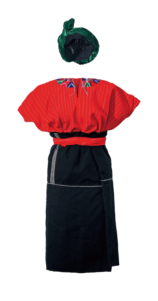 Este es uno de los trajes que pertenecen a la colección del Museo Ixchel del Traje Indígena, cuyo apoyo para la publicación de esta serie es fundamental, especialmente, el de su directora y curadora, Violeta Gutiérrez.