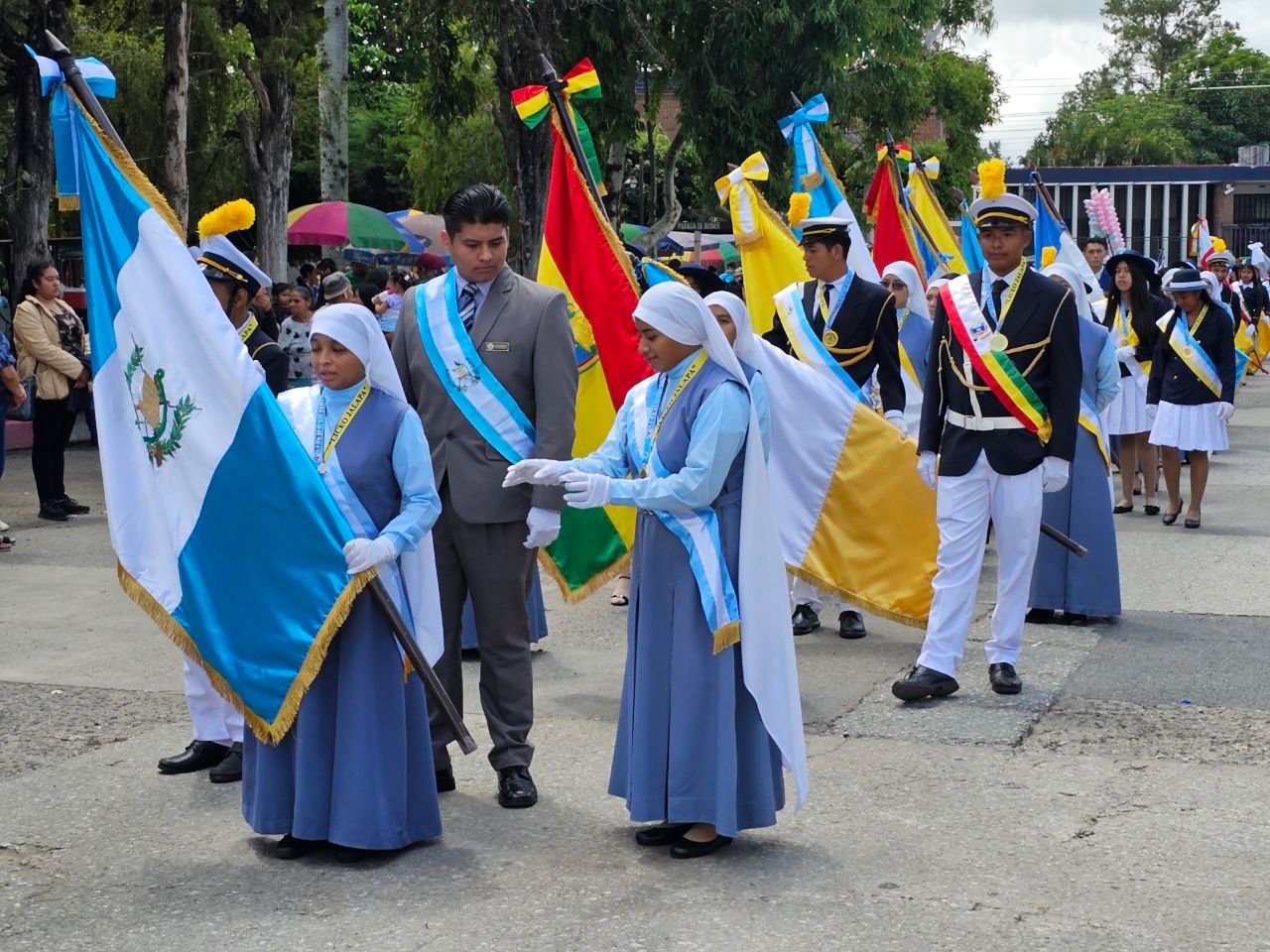 Cada institución escolar llevaba sus batonistas, bandas escolares y reinas, y lo hicieron con estilo. Los trajes y uniformes relucían con los colores de la bandera guatemalteca, y los estudiantes desfilaron con un sentido de responsabilidad cívica que era palpable en el aire.