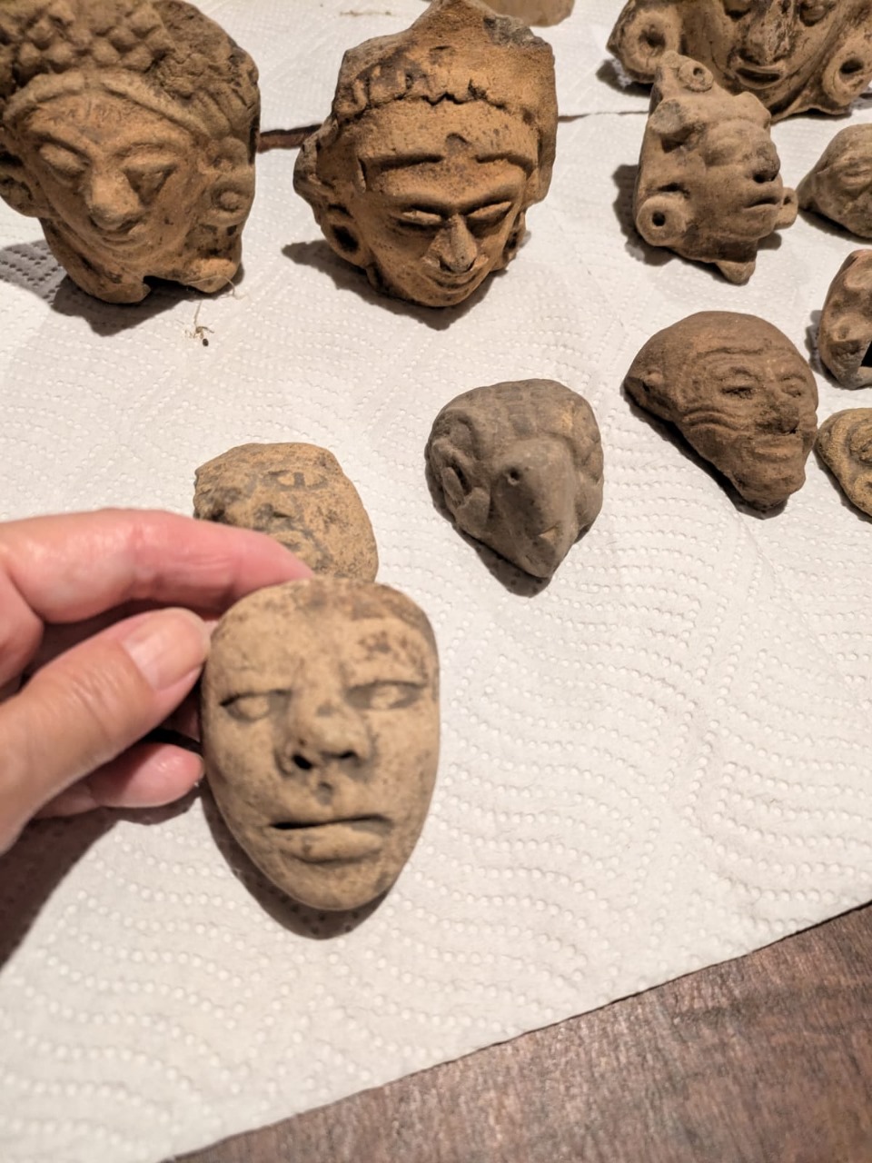 - 29 bienes prehispánicos de cerámica, entre ellos: cántaros, figurillas, vasijas, silbatos y fragmentos antropomorfos y zoomorfos.