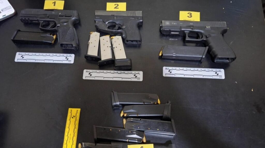 De acuerdo con información oficial, en el centro —donde permanecen recluidos 301 integrantes de la mara Salvatrucha— se decomisaron tres pistolas marcas Taurus, Pietro Beretta y Glock, todas calibre 9 milímetros.