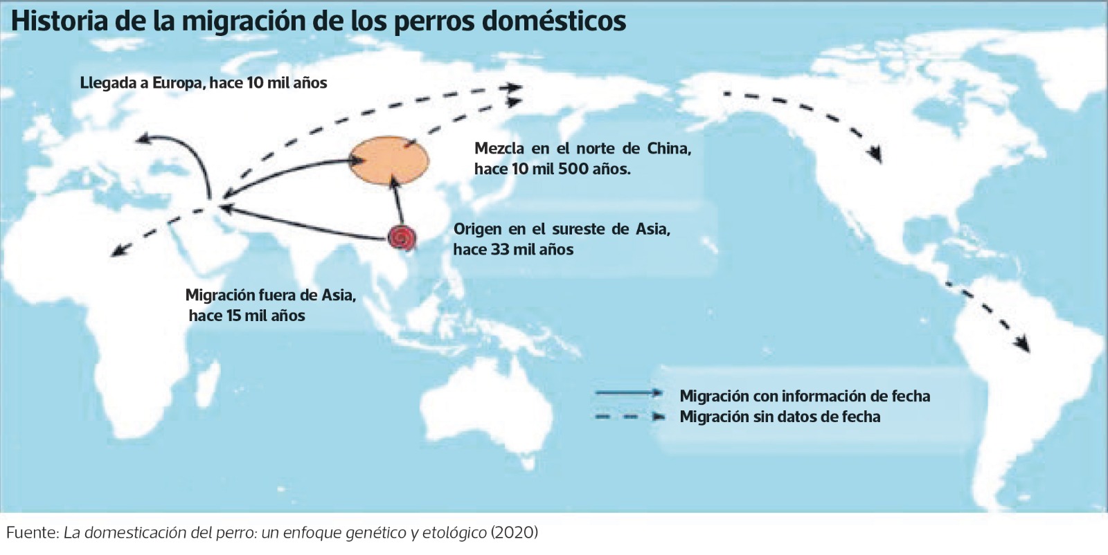 Fuentes consultadas: Origen y diversidad de la especie canina, de Dunner S. Cañón J. artículo de la revista veterinaria Canis et felis (2014), y tesis La domesticación del perro: un enfoque genético y etológico, de Sophia Murga (2020).
