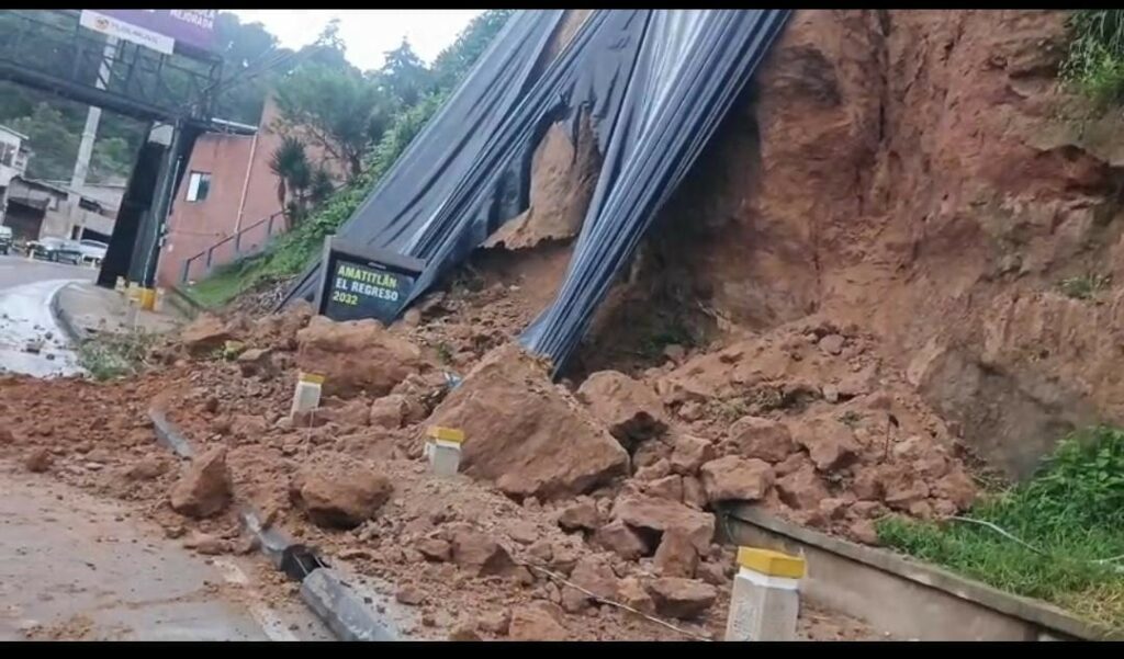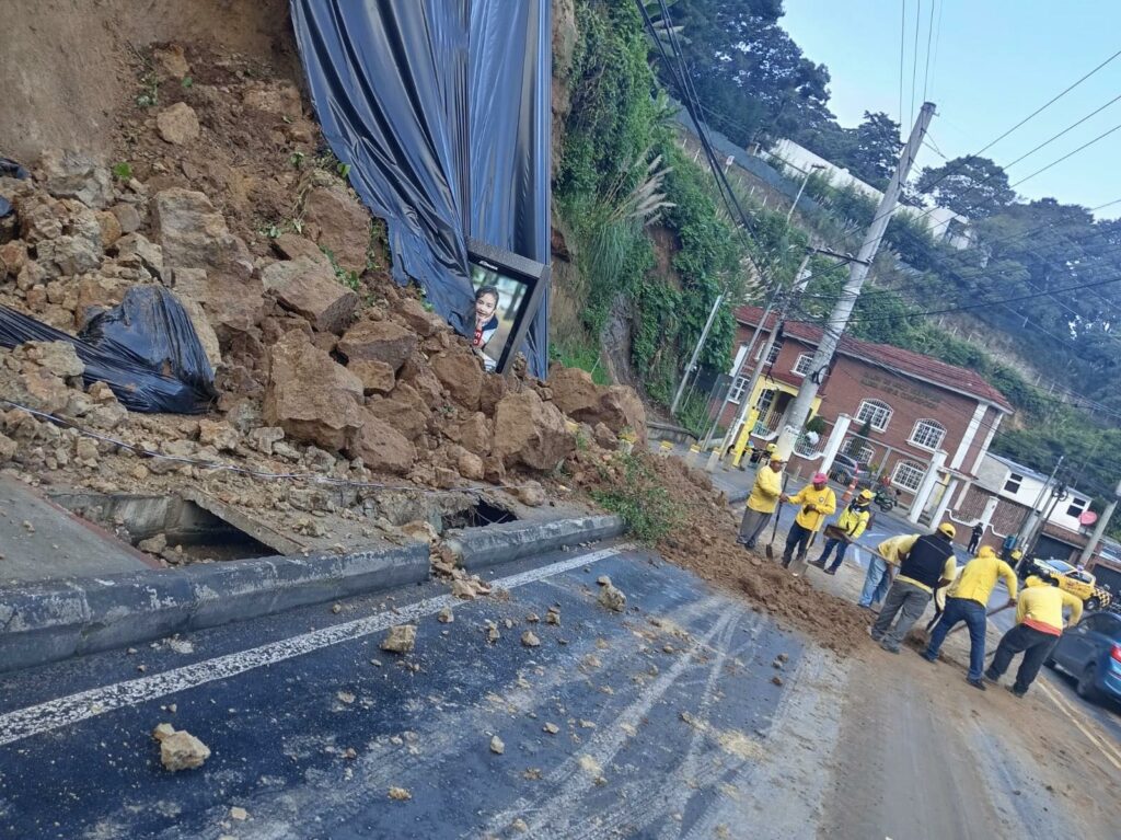 Se registró un derrumbe que complicó el paso de vehículos en el Km 8.5 de la carretera a Muxbal esto durante esta mañana de este jueves 16 de octubre.