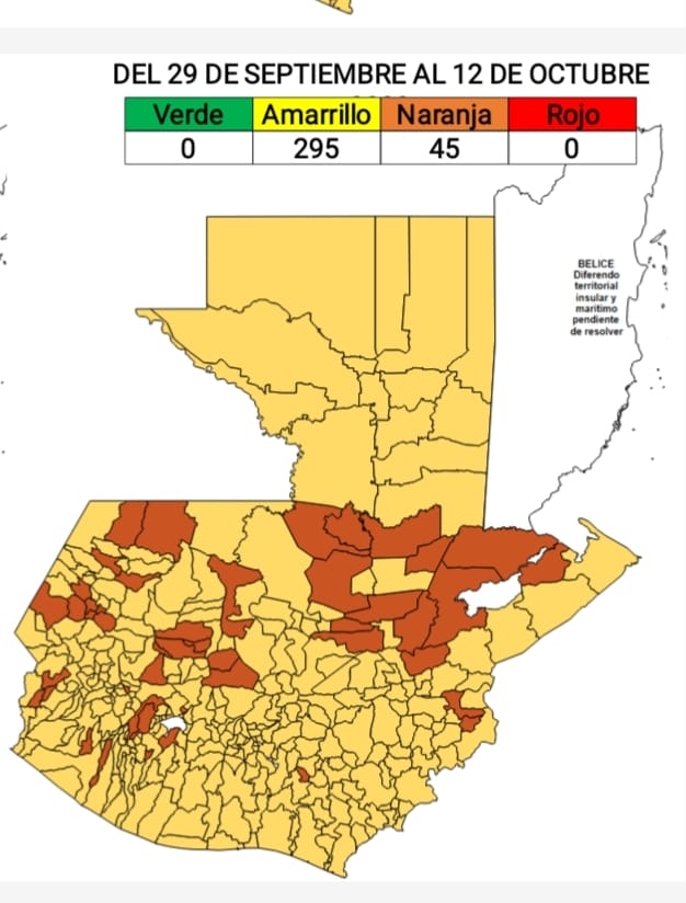 Para el próximo período de 14 días, se han clasificado 295 municipios en alerta amarilla y 45 municipios en alerta naranja.