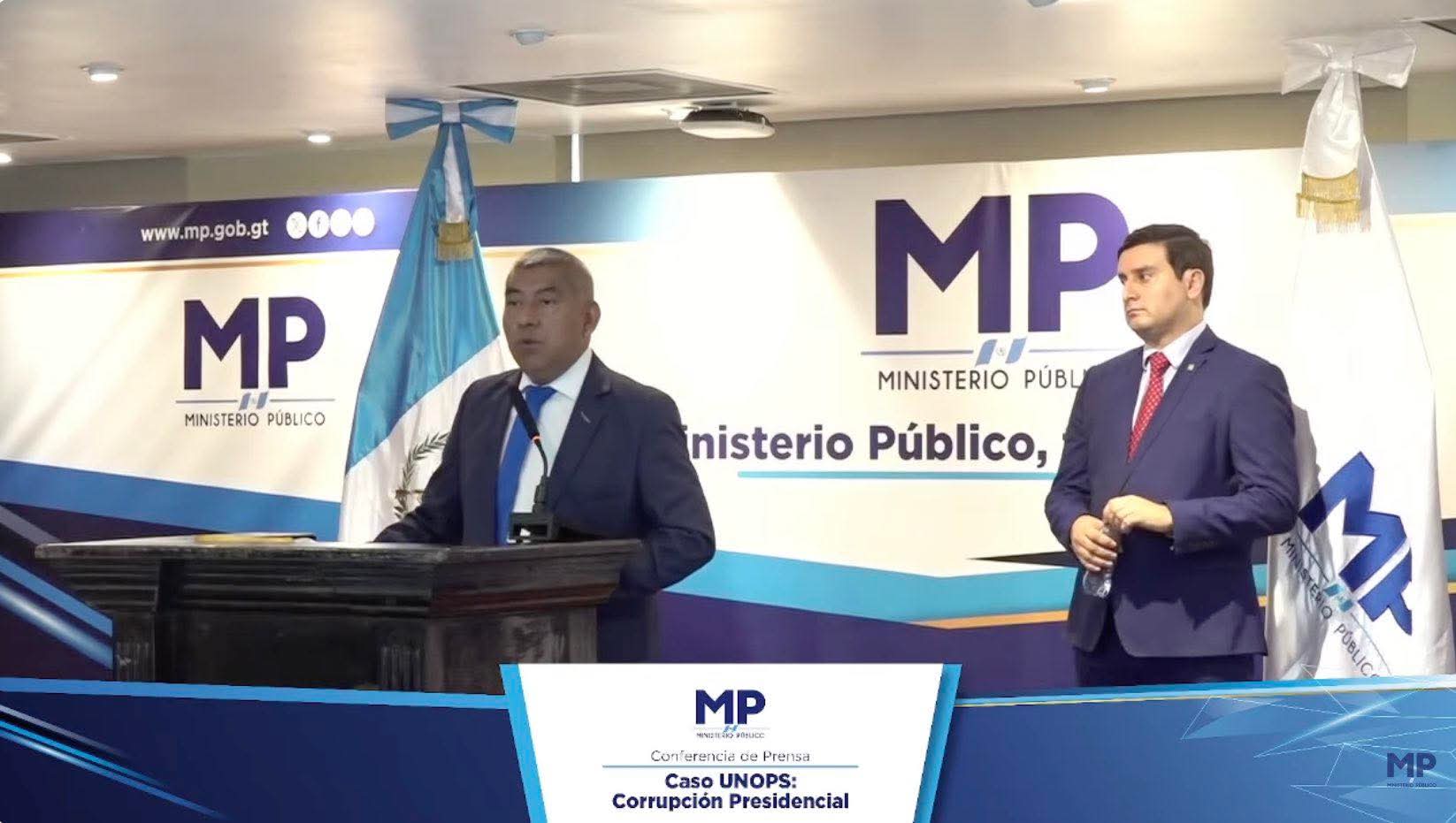 El Ministerio Público brinda una conferencia de prensa en el marco de allanamientos por el caso denominado «Caso UNOPS: Corrupción Presidencial», en donde participaron el jefe de la FECI, Rafael Curruchiche, y Mario Veliz, agente fiscal de esa unidad.