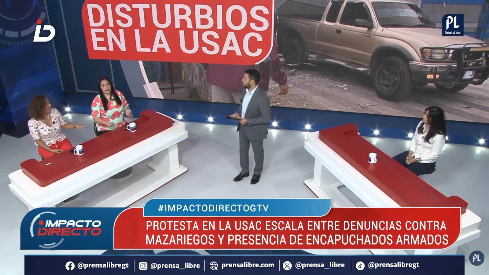 Durante el programa Impacto Directo, de Guatevisión, se abordó la crisis en el campus central de la Universidad de San Carlos de Guatemala (Usac), donde estudiantes denunciaron ataques desde el interior del recinto ocupado por encapuchados, exigieron el ingreso a la universidad y vincularon el cierre con el proceso de elección de rector previsto para este 8 de abril.