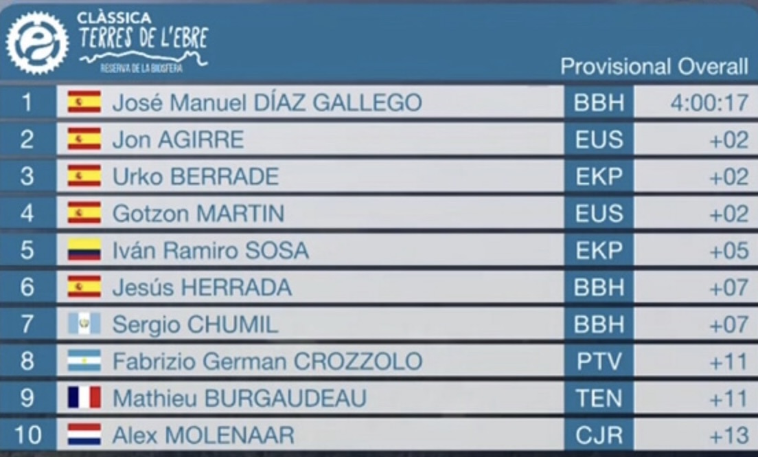 La victoria fue para el español José Manuel Díaz, quien remató el trabajo colectivo del Burgos Burpellet BH en el selectivo final en ascenso para imponerse por delante de Jon Agirre del Euskaltel-Euskadi y Urko Berrade del Kern Pharma. El equipo de Chumil dominó la carrera en los momentos decisivos y colocó a tres corredores entre los siete primeros clasificados.