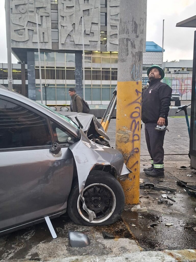 En donde un vehículo colisionó contra u poste de energía eléctrica. Autoridades de tránsito de la comuna capitalina atendieron la emergencia.