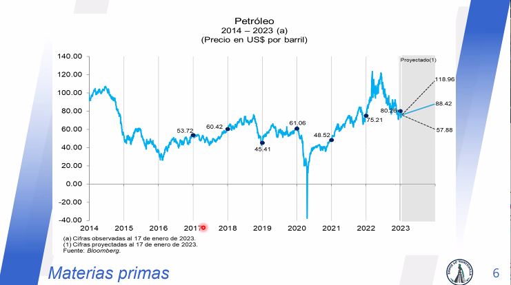 Explicaron que el petróleo es la causa principal de los efectos inflacionarios a nivel mundial. En 2022, se cerró en precio promedio de 80 dólares por barril y se prevé que este año suba el precio hasta alcanzar un escenario de 88.42 dólares por barril.