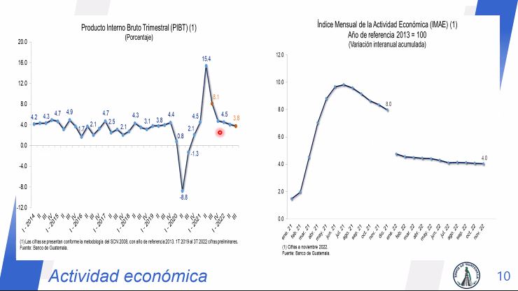 Otro de los aspectos mencionados fue que según el Fondo Monetario Internacional (FMI), un tercio de los países del mundo estarán en recesión. Sin embargo, este no es el caso de Guatemala.