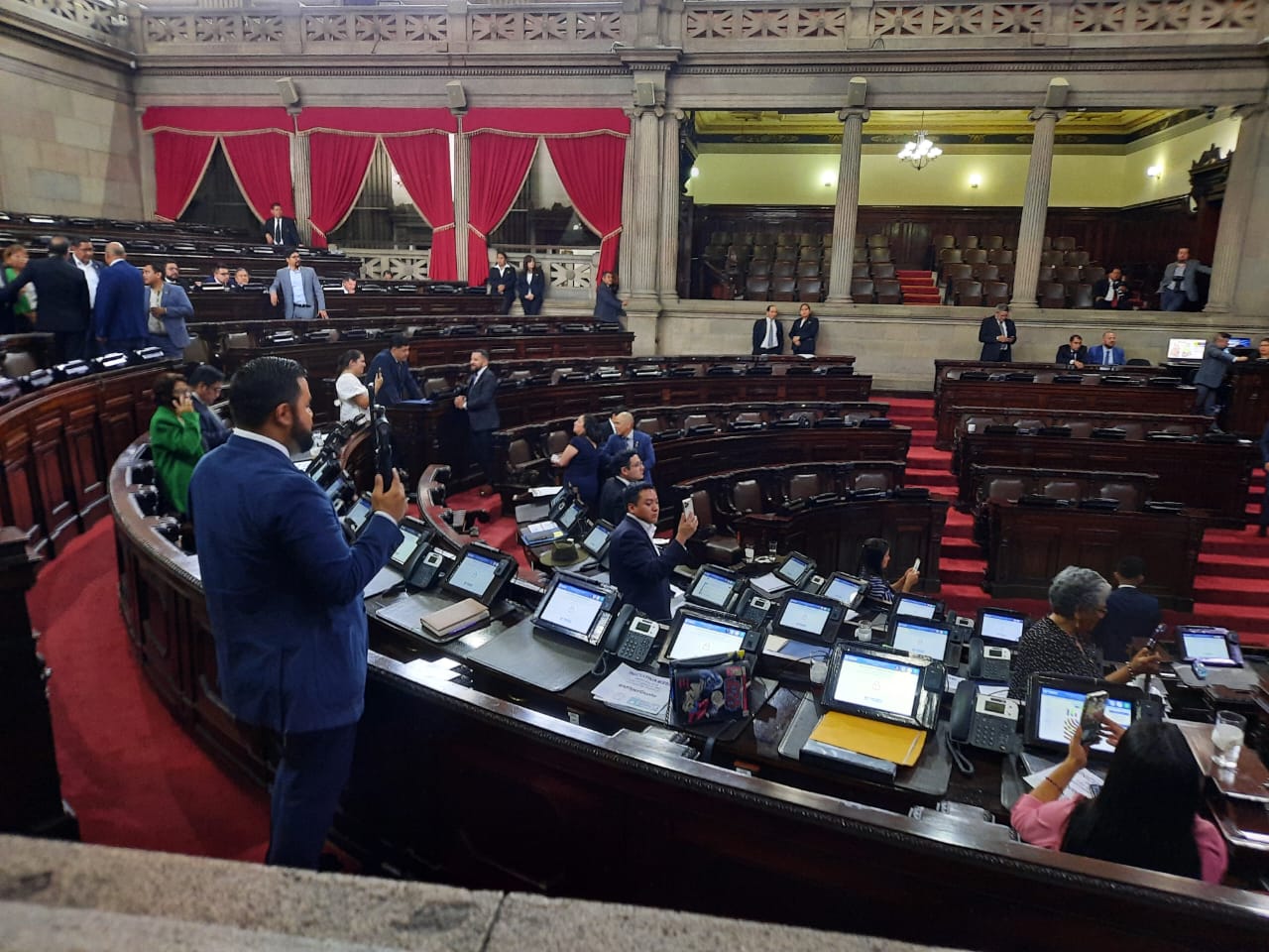 Diputados oficialistas pidieron alargar la sesión, pero no fue posible por la inasistencia de la mayoría de congresistas. Fotografía: Prensa Libre (Emilio Chang).