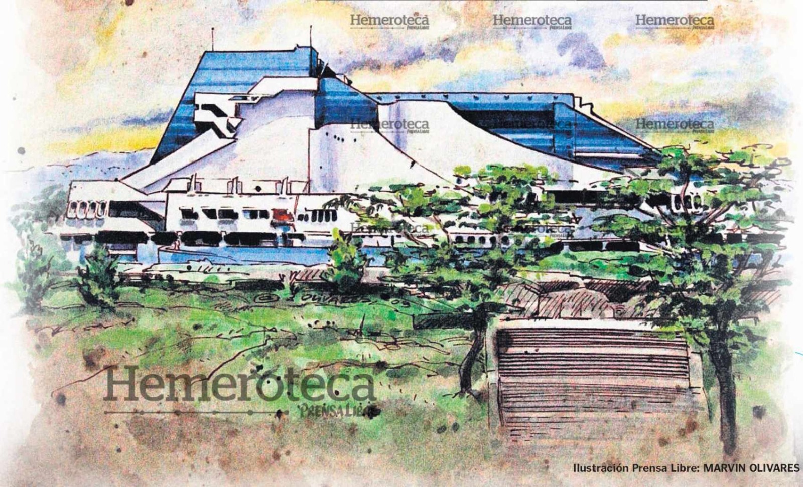 El Centro Cultural Miguel Ángel Asturias celebra 47 años de historia junto a la residencia de Ricardo Arjona. (Ilustración Prensa Libre: Marvin Olivares)
