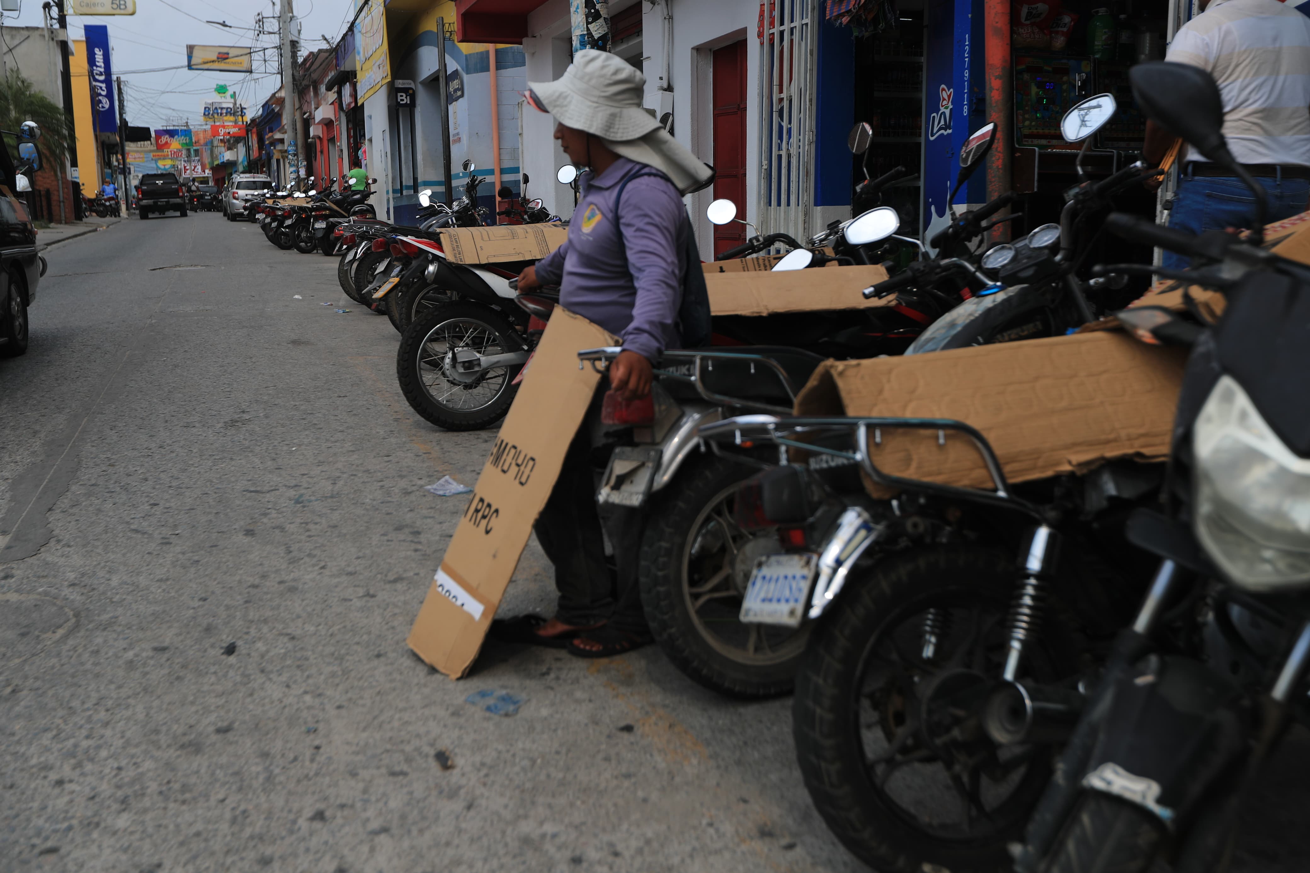 Brian Morales, otro poblador, indicó que cada día llega a los alrededores del Parque de Zacapa a cubrir las motos con cartón por el calor en el lugar. Algunas personas le aportan económicamente por esta labor.