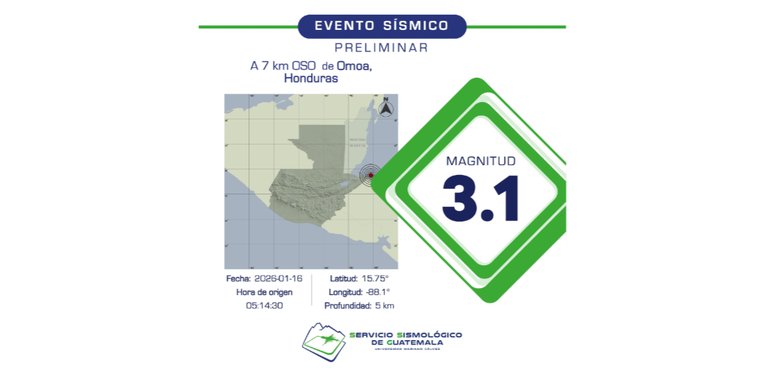 A las 5.14 horas, el Servicio Sismológico de Guatemala registró otro sismo de magnitud 3.1, con epicentro a 7 kilómetros de Omoa, Honduras.