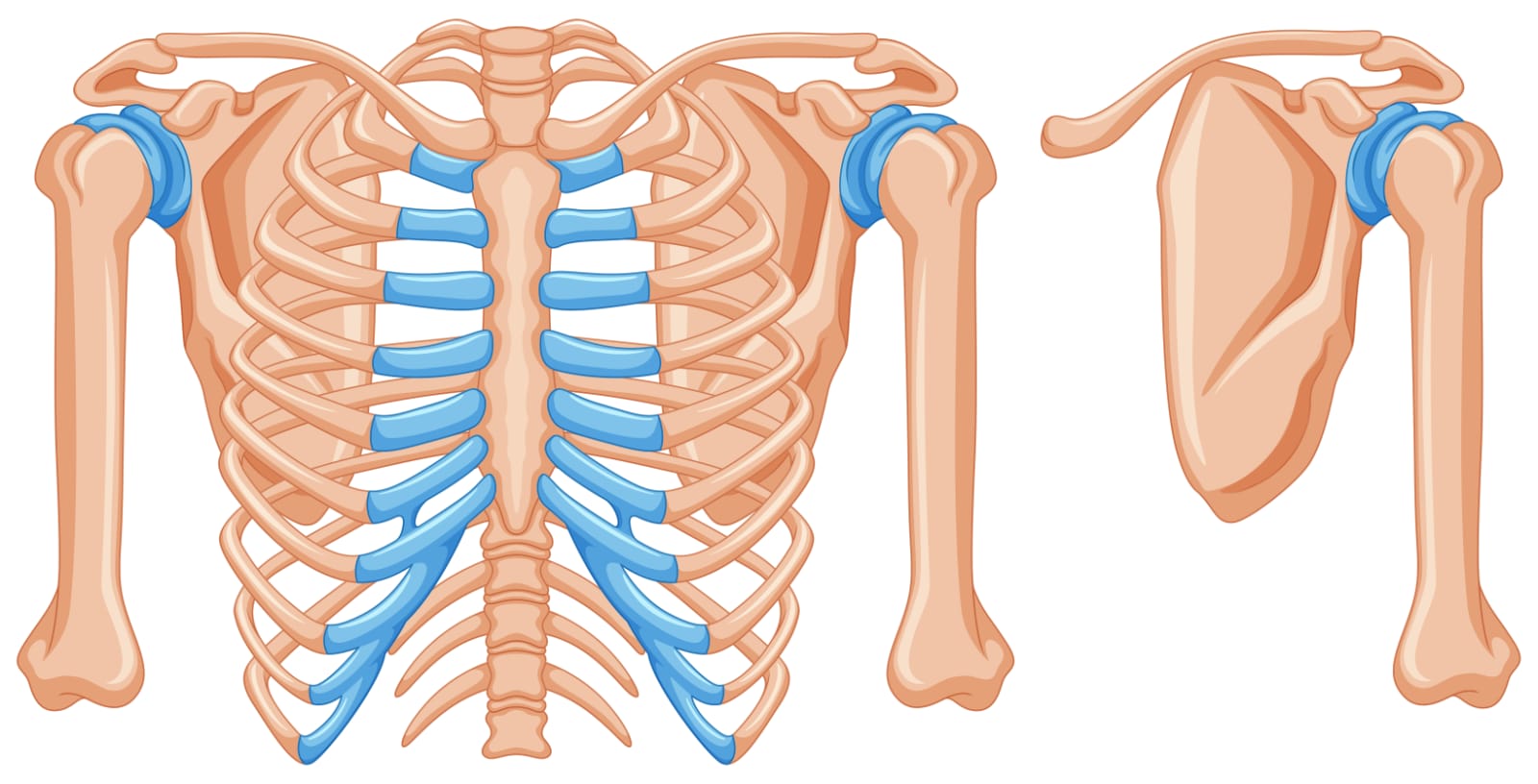 En total, el cuerpo humano está conformado por 80 huesos axiales, los cuales incluyen los de la cabeza, el rostro, el hioides, los auditivos, los del tronco, las costillas y el esternón. Además, cuenta con 126 huesos apendiculares, que se encuentran en los brazos, hombros, muñecas, manos, piernas, caderas, tobillos y pies.